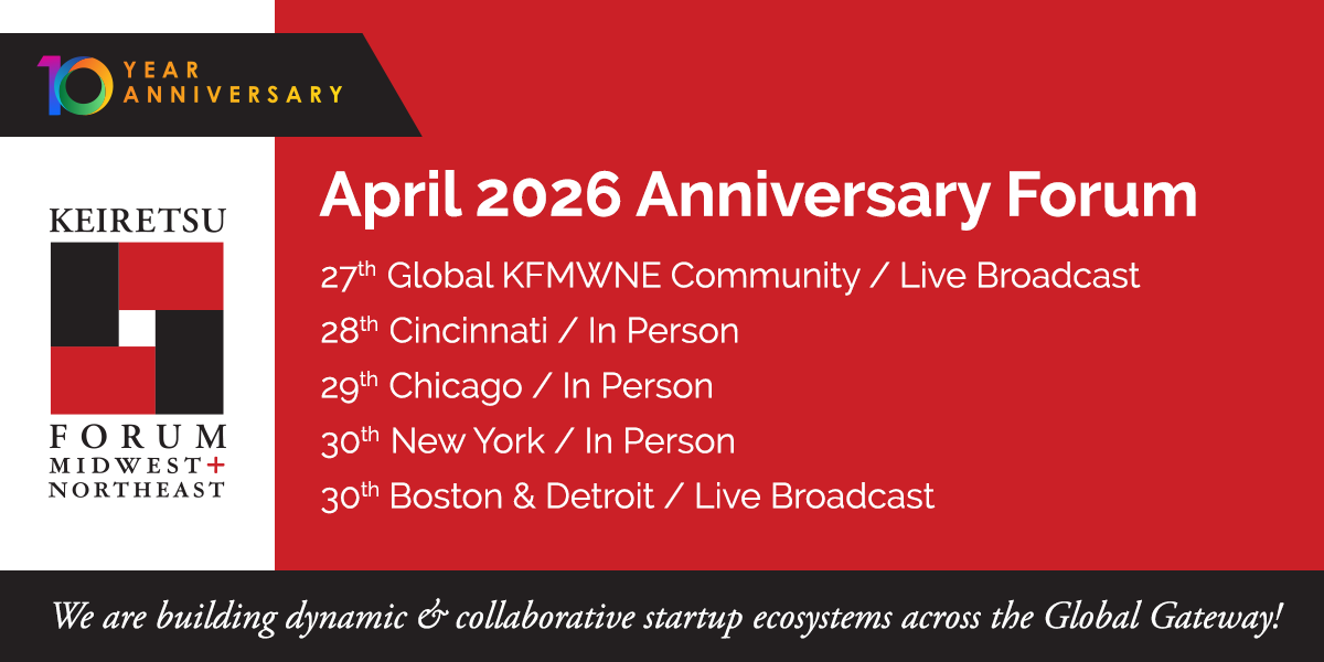 Keiretsu Forum and Keiretsu Forum Midwest + Northeast represent a global investment community of accredited investors, venture capitalists, micro-funds, family offices, and corporate/institutional investors. The parent organization was launched in 2000 and has become the largest global investment network with members spread over 50 organizations, on 4 continents. Keiretsu Forum members invest in diverse high-quality opportunities, positioning itself amongst the topmost active venture organizations in the world. Keiretsu Forum is known for its rigor in selecting and curating deal flow that is presented to its members monthly. The Midwest + Northeast Gateway was established to draw upon the uniqueness of both the Midwest and Northeast investor networks, providing its global entrepreneurial deals with tangible and strategic market insights, access and knowhow.
